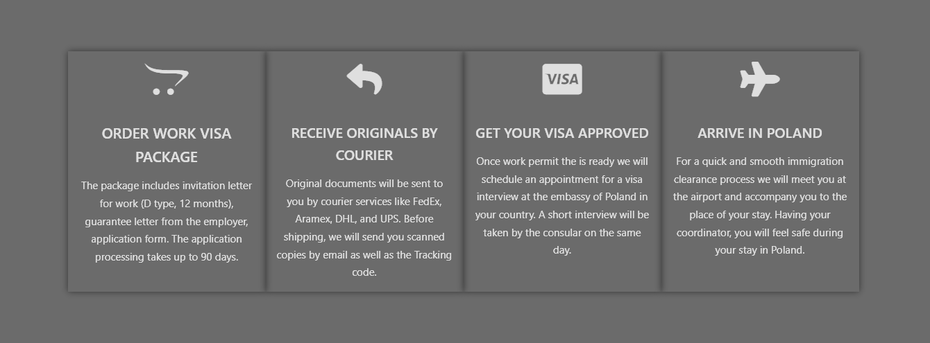 In order to travel to Europe, most visitors need a visa first. We are eager to help individuals and businesses get a visa quickly and smoothly.We offer direct contracts with Polish employers willing to hire foreign nationals. In order to legally work in Poland, you need a work permit. This document can only be obtained on the request of your employer.